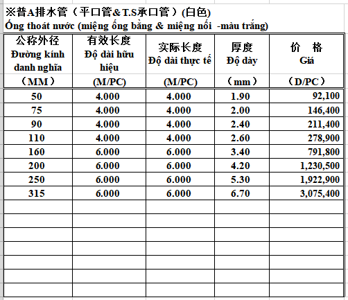 Sản phẩm Ống thoát nhựa PVC-U nhãn hiệu Nam Á (miệng ống bằng & miệng nối -màu trắng) là dòng sản phẩm chất lượng cao, bền bỉ rất được khách hàng ưa chuộng của Công ty TNHH ZHICHENG Việt Nam. Chúng tôi có thể đáp ứng bất cứ đơn hàng số lượng nào trong thời gian ngắn với chất lượng tốt hàng đầu.